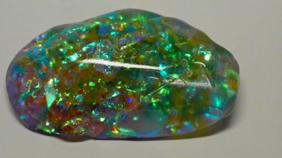 息子が高校の修学旅行でオーストラリアへ行った時のお土産に頼んだオパールを、見ながらUVレジンで作ったオパール。何度も作り直してヘロヘロ。
