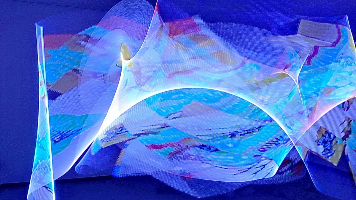 Pixelstick(ピクセルスティック)の画像作成ー2 2015/12/142014/09/08 by 山﨑 惠水 画像を選別する時は、彩度明度のコントラストが強く色相の種類が7つぐらい画望ましい。この画像を、24ビットのしてインプットすれば良い。以下、Pixelstickで作った画像である。 バックは、ブルー系統になる。タイムが長いと黒い部分がブルーになる。 画像の模様が綺麗に出ている。 黒いバックに、扇のぎざぎざが効果的に出てくる。 これは、Pixelstickを固定しておいて、カメラを動かして作った。細かい動きが可能である。 この画像が、お気に入り。