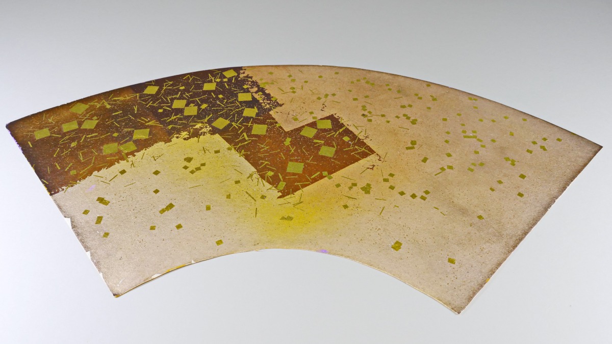 これらのの扇面がどうして切箔の最高傑作かというと、箔の上に箔を重ねたのではなく、箔は一重である。地紙に塗布した膠とふのりが乾かないうちに切箔を置き、その上に大きな箔を置く。箔の上を柔らかい刷毛(この場合は仏師刷毛)でそっと均一に押し付けたあと、二重になっている上の箔を取り除く。一気呵成に素早くしなければならない。地紙に膠とふのりを混ぜたものを塗り、一度乾かしてから厚手の紙に挟んで濡れたバスタオルで巻いて一昼夜おいた後、膠とふのりが膨張したところで箔を貼るのである。これは言葉でいくら書いてもよくわからないと思う。