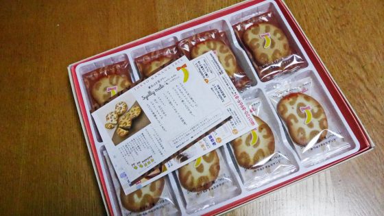 薄焼きラングドシャクッキーにサンドされたミルキーバナナショコラということ。