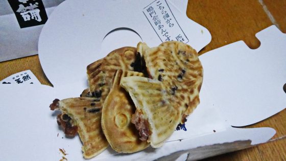 この鯛焼、ふつうじゃない。普通の鯛焼は外も内もふにゃふにゃ。中の餡子はベタ甘。しかし、この鳴門の鯛焼は、外側がパリパリで中の餡子がフワフワ。アンコも自然な甘さ。