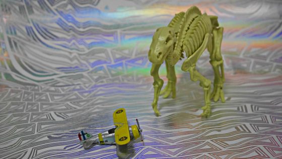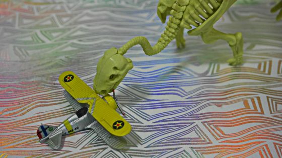 こうしてキョウリュウさんは、飛行機さんをガソリンスタンドまで運びました。