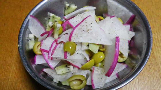 食べるときに好みに応じてレモンを絞る。爽やかなサラダである。スパゲティの添え物によくあった。