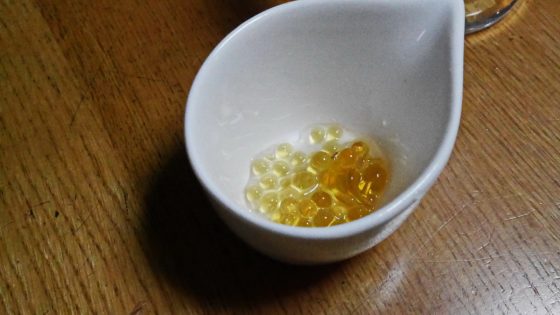 このアルギン酸ナトリウムと塩化カルシウムが反応すると、不溶性のアルギン酸カルシウムが出来る。人工イクラはこの原理で作られている。理屈ではよく知っているつもりではあるが、実際に人工イクラを作ったことはない。しかし、知育菓子「おえかきグミランド」の刺激を受けて、実際に作ってみる事にした。