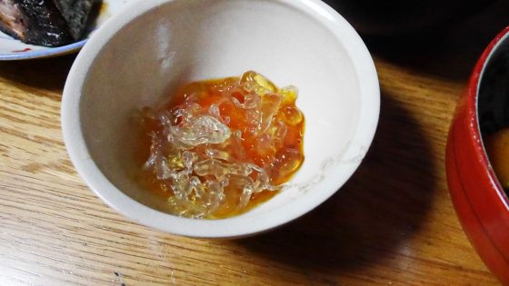 これを、熱々のご飯のかけて食べる。まあまあの味であったが、息子の感想は、「ただの卵かけご飯とどう違うのか分からん。」ということであった。