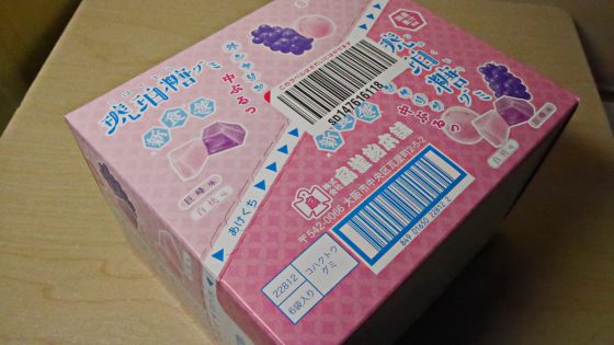 巨峰味と、白桃味がある。原材料名を見ていると、「粉末オブラート」なるものが書いてある。粉末のオブラートなんて初めて知った。