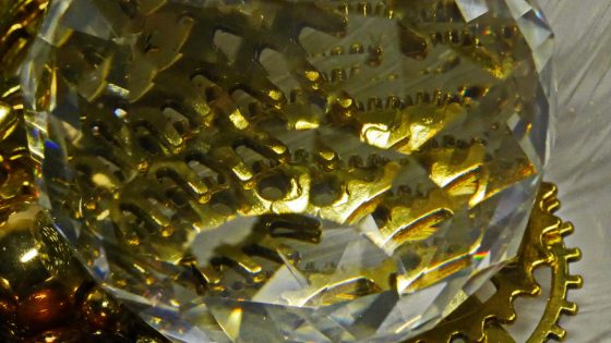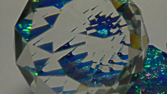 このダイヤモンド型ガラスで万華鏡を作ってみたい。頭の中がハーレーションを起こしそう。