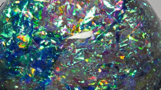 少しずらしただけでも屈折して底のレジンのキラキラが見える。