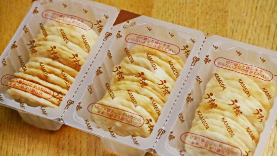以前のアヒージョ味が美味しかったので、期間限の亀田製菓「うす焼・アンチョビガーリック味」も買った。