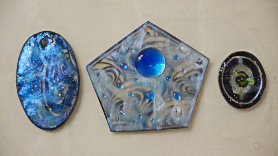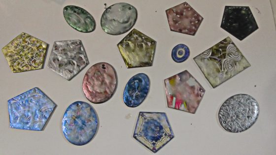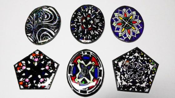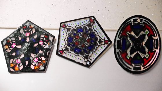 私のお弟子さんが此のプラバンでステンドグラス風のアクセサリーパーツを作ってきた。