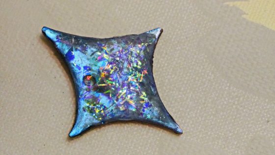 ブルーパールに塗った裏側も、それなりにキレイので、UVレジンで加工してリバーシブルのアクセサリーにする。