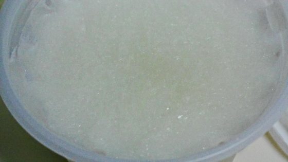 残しておいたアイスの容器にシャーベットの素を入れて冷凍庫で固まらせる。