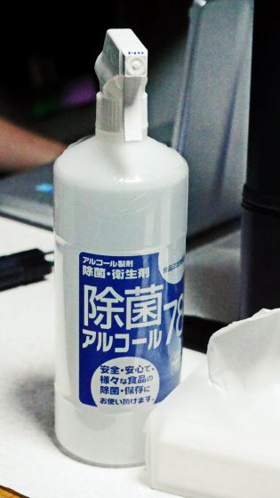 まず、除菌アルコールスプレーであるが、エタノール71%なのでよく光硬化樹脂のベタつきをとることが出来る。ニオイもそれほどではない。その上価格が安い。