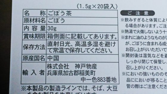 最近ごぼう茶が話題になって人気があるらしい。