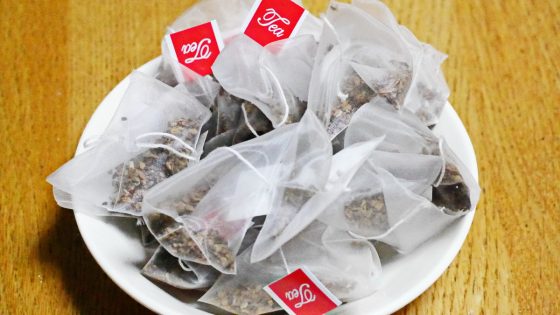 ティーバッグの中には木くずのようなものが入っている。