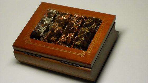 そこで、以前からこの時計の表面の文字を隠した跡に何か置きたいとと思っていたので、レジンで硬化させたコーヒー豆を置いてみることにした。