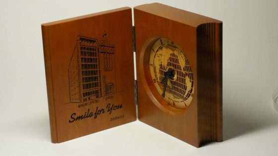 これはリサイクルショップで見つけた時計であるが、記念品だったらしく表面に余計な文字が印刷されているのが残念であった。