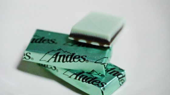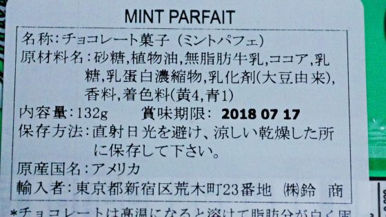 「ミントパフェ・シン」の意味は何か。ミントチョコでチョコレートを挟んだ薄いチョコレートという意味らしい。