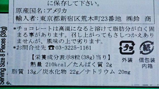 8粒で210キロカロリーということは一粒25.1キロカロリー。なぜ10粒251キロカロリーという表示にしないのかなあ。疑問。