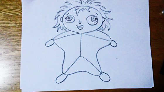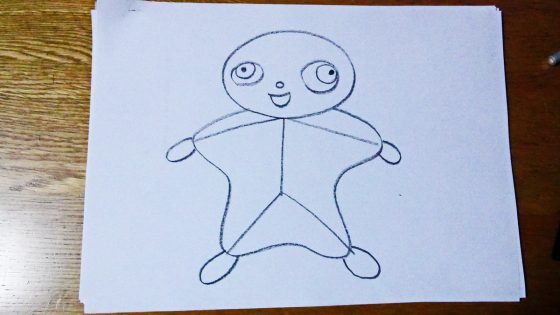 左右の足を描く。手よりも少し大きく。手のほうが足より大きな人はいないと思うが。