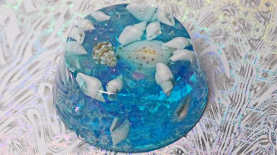 透明のビーズやビー玉がたくさん入っているので、神秘的な感じがする。