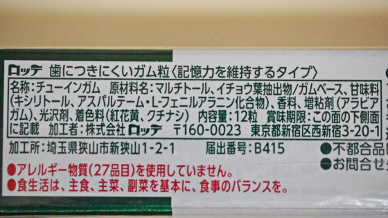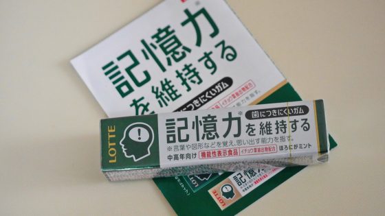スーパーのレジに並んでいたら、ガムが並んだ棚の中にこの「記憶力を維持するガム」を見つけた。