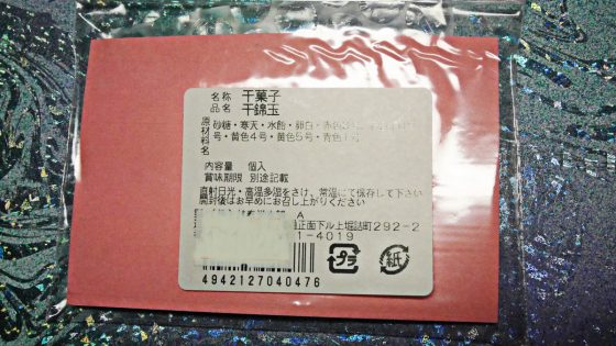 色んな色が付いているが味は同じ。琥珀糖のようなもの。御土産にはいいかな。