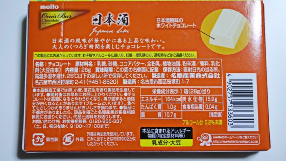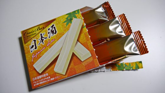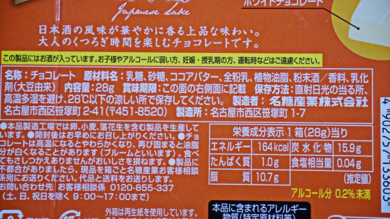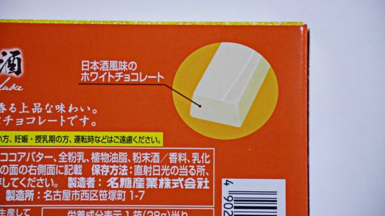日本酒風味のホワイトチョコレートとは書いてあるものの、甘口とも辛口とも分からない。