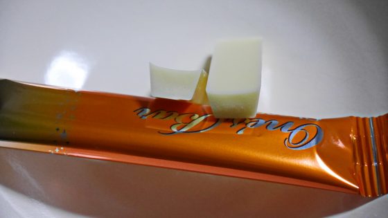 小袋の中には細いホワイトチョコのスティックが入っている。クンクン匂いを嗅いでみるが、日本酒の香りはまだわからない。