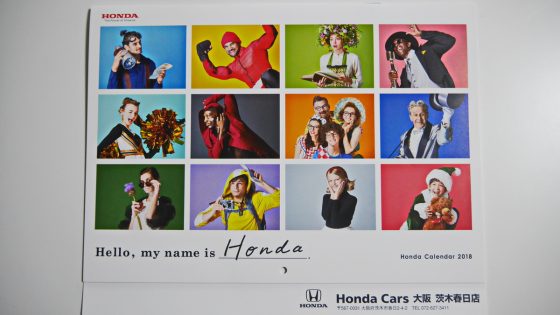 ホンダ・カーズの来年(2018年)のカレンダーはこれ。