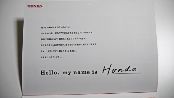 「コンチワ、私の名前はホンダです。」って、言わなくても分かっているのだけれどね。