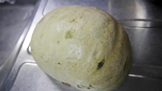 この白っぽい南瓜は硬いとか。名前の雪化粧とは言い得て妙である。