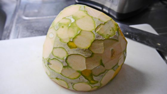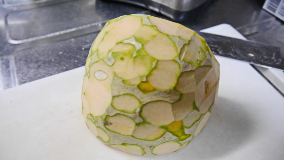 皮が硬そうなのでこれぐらいに剥いておく。