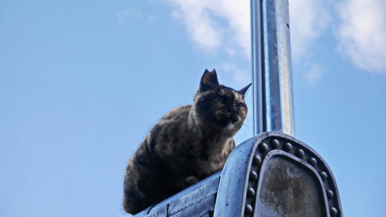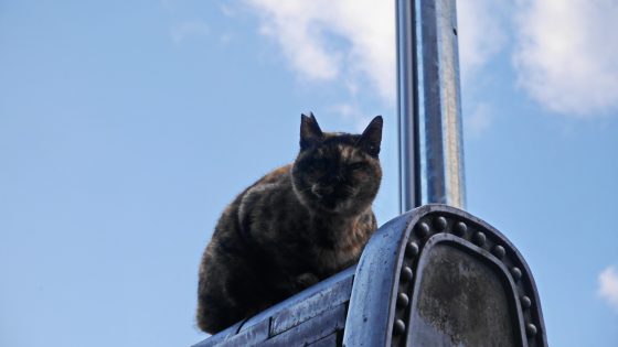逆光でよく見えない。猫ちゃん自体も黒っぽいので影のように見える。