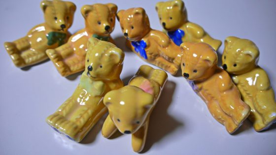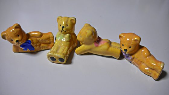 今回は、クマの箸置きがサランラップでくるまれてセロテープでぐるぐる巻きにしてあり、中の恥お気がいくつ入っているのかもよく分からない状態であった。しかし、値段が300円だったので速買った。家に帰って数えてみると8個も入っていた。