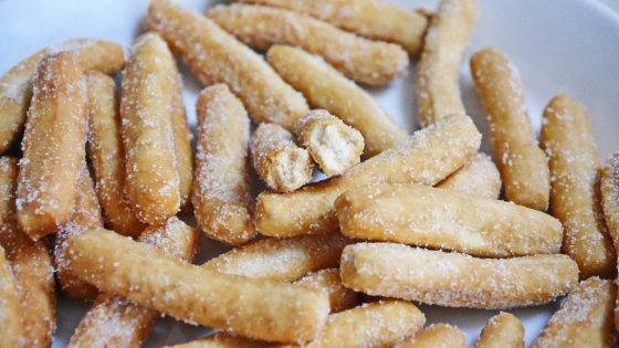 お砂糖も均一についている。食べてみると・・・かたい・・・粉っぽい。