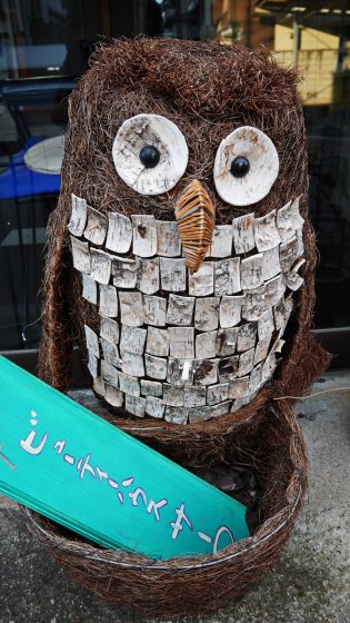 これは大きな木彫りのフクロウ。不動産屋さんの店頭に飾られている。この不動産屋はあちこちに支店を出して手広くやっている。このフクロウのおかげかも。しかし、同じフクロウを飾ってあったクリ‐ニング店は去年潰れてしまった。ご利益はなかったようである。