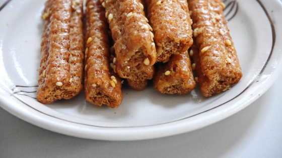 断面は三角形になっている。食べてみると歯ごたえもよくカリカリして唐辛子の味も思いの外控え目で、ごぼう味のかりん糖である。ごぼう味のかりん糖は色々食べたが、これは今まで一番美味しかった。これ以上のものがこの世にあるのだろうかと大げさに感じるほど美味しかった。気に入りすぎた。花マルである。