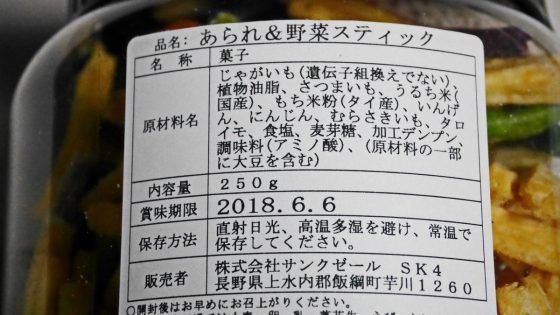 薄い塩味でぱりぱりしていて、材料によって少しずつ味が違うのも面白いので次から次へと手を伸ばして食べてしまう。その上、一つが小さいスティック状なので、一つ食べただけでは物足りない。そこで次はどれにしようかと又手を出すのである。日持ちがするので、「まあ、買っておいてもいいかな。」と思ってしまう。人間の心理をよく考えて作られている。