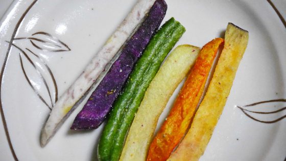 中身は、さつまいも、にんじん、いんげん、むらさきいも、タロイモ、そして、じゃがいも、米でつくったスティック状のあられ。このバリエーションに富んでいるのが、食欲をそそるのである。お腹が空いていなくても食べてみようという気にさせる。