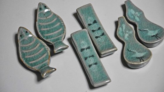 月城陶窯の陶芸作家象軒作の青磁だと、日本語で書かれている。ということはこれは日本向けに作られた箸置きということか。お土産か輸出用の陶器のようである。
