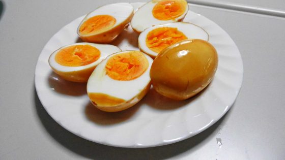 燻製の素に漬け込んだ卵を2つに切って、一切れ食べてみる。あっ・・・燻製の味!おいしい。