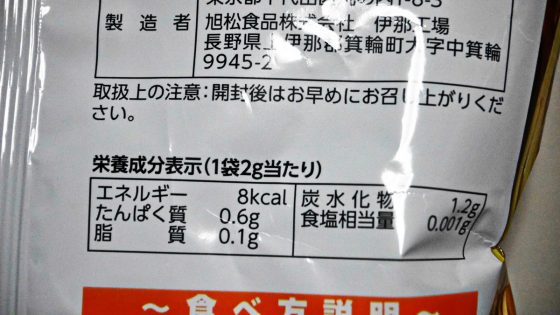 小袋2グラムのカロリーも書いてある。