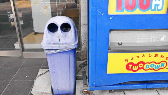 今回は自販機の横でぽつねんと独りぼっちで立っている2つ目のゴミ箱さんをいくつか挙げてみる。