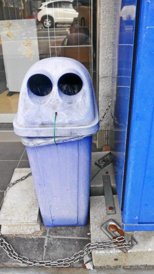 奥目のゴミ箱さんは空威張りをして見せても、よく見るとやはりつまらなそう。