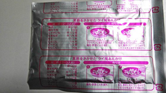食べてみると美味しい。メリハリの付いた酢豚の素という感じで、さすが暑いタイの料理の素だと思わせる。甘酸っぱくて夏向きである。この「タイ風あんかけの素」を使えば、工夫次第で色んな料理を作ることができる。カロリーを控えたいのなら油で炒めないで茹でてそのうえにこの「タイ風あんかけの素」で作ったタレをかければ良い。