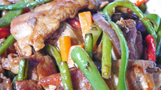 鶏肉がなかったので豚肉で代用。野菜も冷蔵庫の残り物で作った。