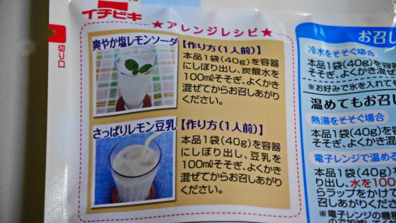一人前1袋(40ブラム)を100ミリリットルの冷水、又は、熱湯で薄めれば出来上がり。