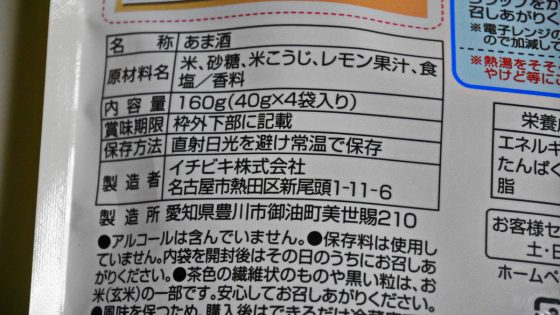 甘酒ブームでもありお店に行くと色んな甘酒が並んでいて選ぶのに苦労する。色んな甘酒を飲んだ結果、非常に便利で価格も安いのがこの「塩レモン・糀あまざけ」である。