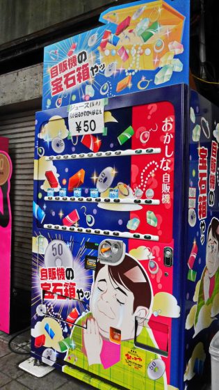 10円自販機の他に50円自販機も並んでいる。50円自販機の場合は10円自販機に比べると「自販機の宝石箱」らしい。